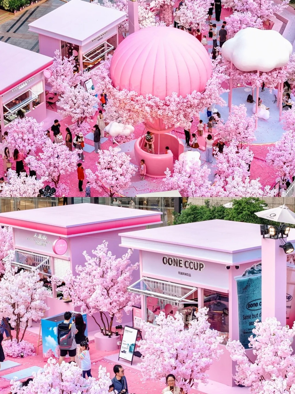 “云樱之境”是深圳布吉万象汇商场推出的一项特别企划,旨在打造一处以樱花为主题的浪漫场景。据商场介绍,展览包括樱花大道、巨型粉红热气球、樱花镜面电话亭等多个亮点设计,并搭配樱花主题美食及快闪店,如抹茶冰淇淋和樱花形状面包等,为游客提供一站式拍照、品味和体验的场所。