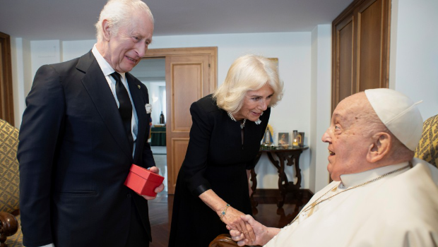 ▲英王查理斯三世夫妇4月9日才刚到访梵蒂冈,与教宗方济各会晤。 美联社