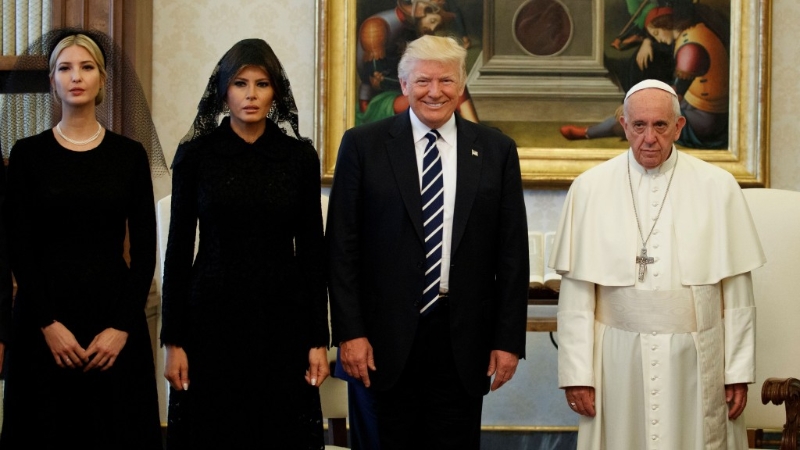 ▲特朗普2017年首次总统任期时曾访问梵蒂冈。 美联社