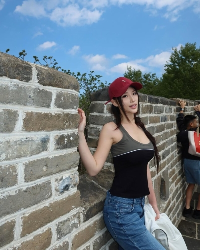 郭珮文今日更新IG,她写道“Great Wall of China”,原来她到了北京并登上长城,因为一句“不登长城非好汉”,所以有留言指她是女汉子。但这位女汉子实在丁点儿男子气概也没有,因为郭珮文的身材真的太过突出。是日她戴上红色帽子、携着名牌包包来到长城,她只简单穿上一件灰黑色背心和牛仔裤,已轻易成为全场焦点。