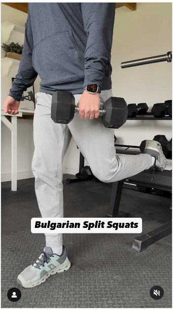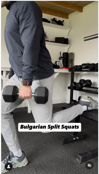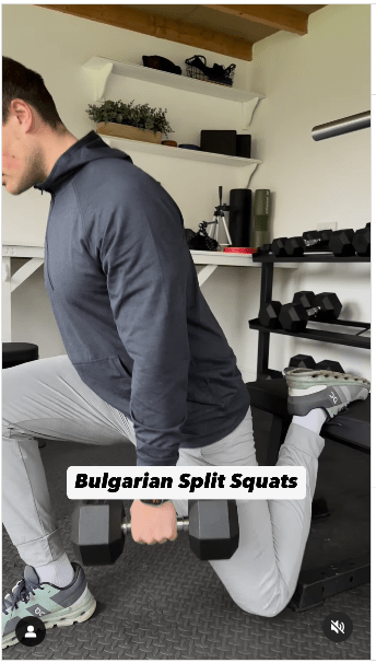▲2. 保加利亚分腿蹲步骤:重复动作。IG@olliethompsonhealth