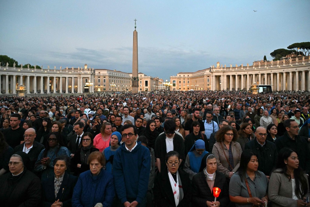 ▲信众在圣伯多禄广场哀悼教宗。法新社
