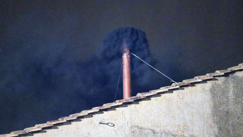 ▲西斯廷教堂的烟囱黑烟代表没有结果。 美联社资料图