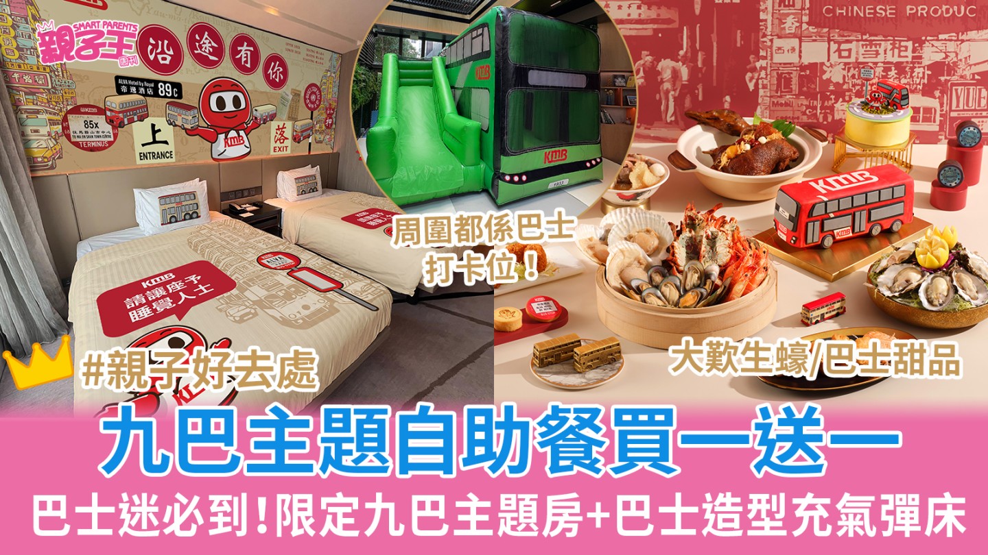 各位巴士迷要留意,位处于沙田九巴车厂附近的沙田帝逸酒店,于这个夏天与九巴合作推出以九巴为主题全新“‘巴’罗万有‧港式盛荟自助晚餐”,更有快闪优惠买一送一,低至HK$259即可叹各款别具特色的造型甜品。 同期还有九巴住宿计划,可入住满布九巴元素的房间,也有“1:1”巴士车头摄影位及巴士造型充气弹床城堡,即睇自助餐优惠详情与酒店住宿计划,即刻预订,跟小小巴士迷去边叹美食边玩边打卡。