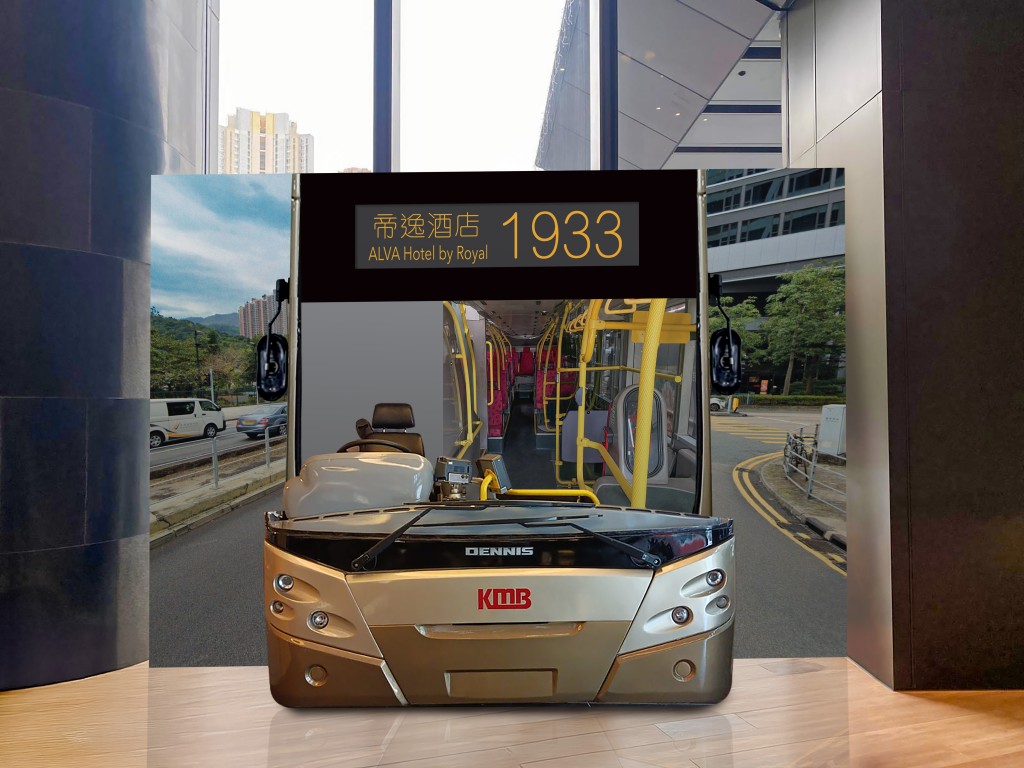 酒店大堂门口还设置了“1:1”的巴士车头,顾客可走进司机位打卡拍照,一尝当车长滋味;而露天停车场则停泊了极具观赏价值的单层亚比安维京古董巴士作展览及拍照,机会难得,惠顾自助晚餐或主题房住宿之客人更可以优惠价参加毗邻的九巴车厂游学团及购买精美九巴纪念品呢!