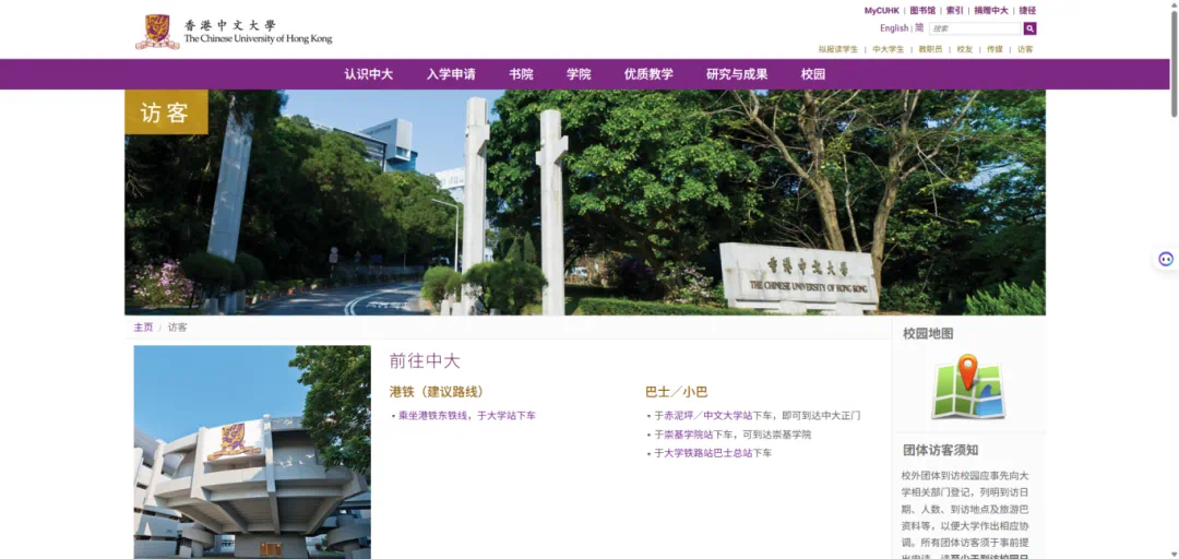 访客信息官网:https://www.cuhk.edu.hk/chinese/university/visitors.html