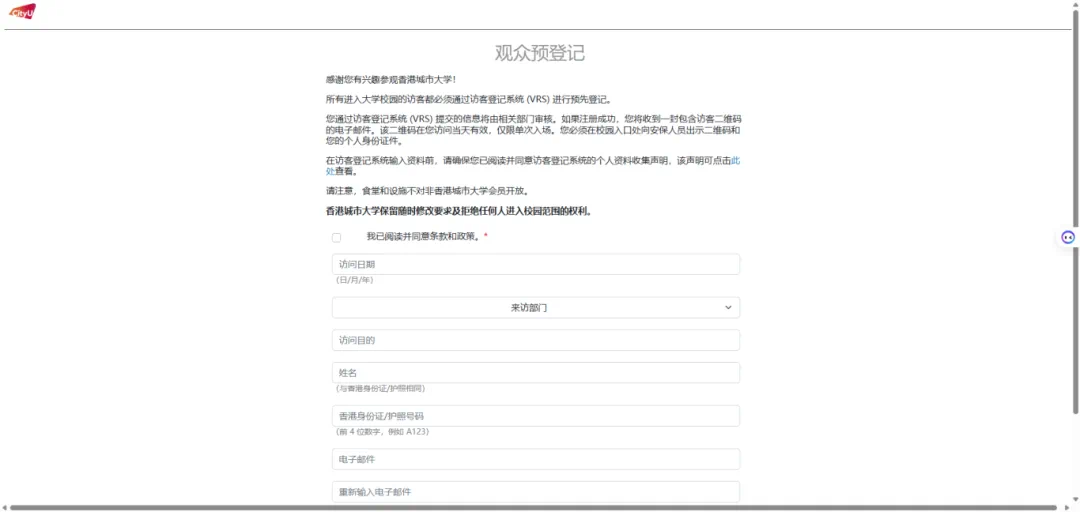 访客信息网站:https://www.cityu.edu.hk/zh-cn/visit/visit-cityu