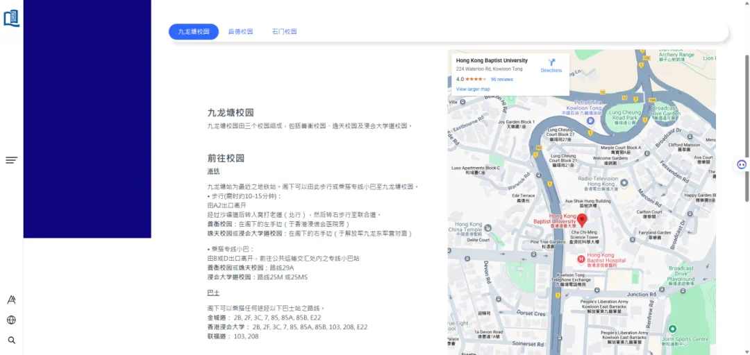 浸大是开放式校园,无需提前预约就可以参观。不过,浸大由九龙塘校园、启德校园、石门校园三个校园组成,同学们出发前可以查一下自己想去哪个校园。
