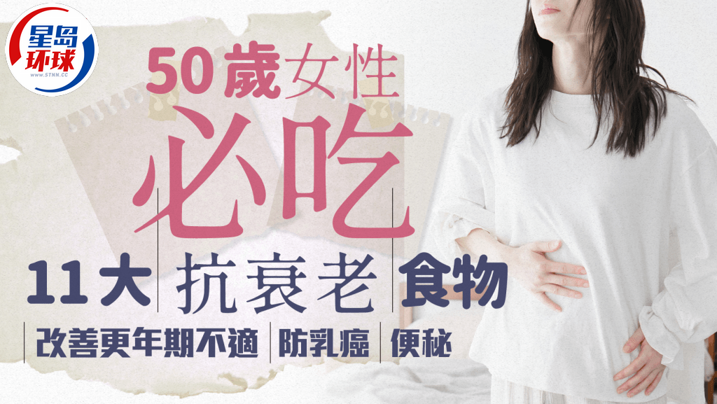 女士在50岁后大多已踏入更年期,有营养师推荐11种抗衰老食物,不但有助纾缓更年期的不适,更有助预防乳癌及便秘的功效,让50岁以上的女性可以“优雅地老去”。