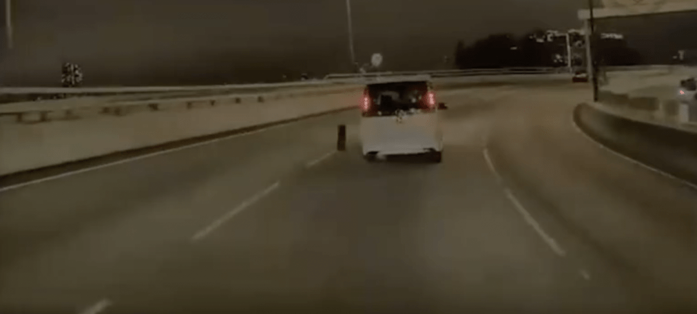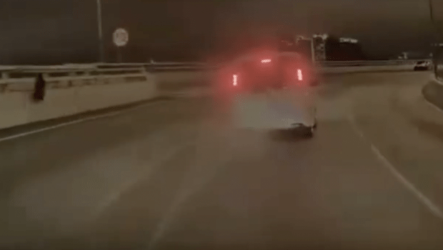 该段车cam片长约10秒,没有提及事发日期及时间,而事发地点则在观塘绕道往九龙湾方向路段,当时一辆白色私家车沿中线行驶,驶近观塘码头对开一个弯位时,左边后辘突然飞脱并向横滚出路面,先撞向桥壆,再弹高大约4米,落地后继续在路中向前滚动,其后消失在镜头内,未知是否堕入桥底。
