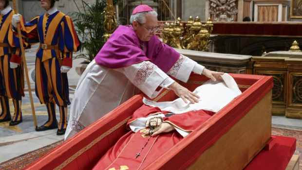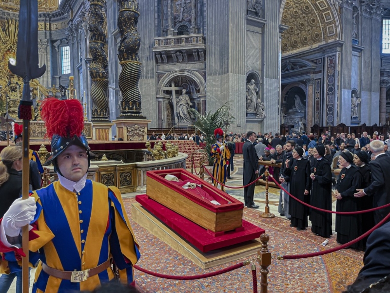 弥撒结束时,灵柩将被带入圣伯多禄大教堂。