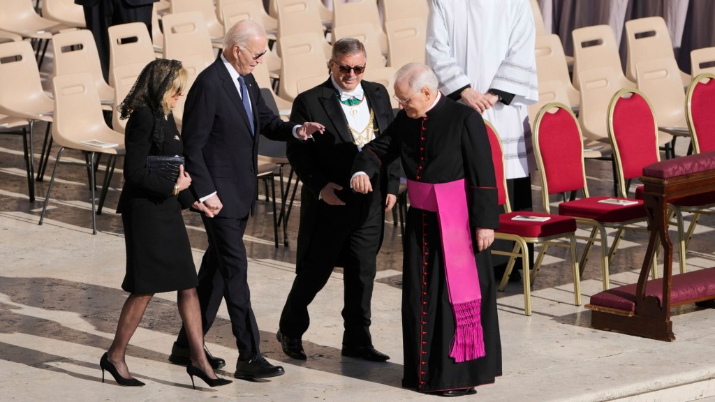 【15:15】美国前总统拜登与妻子吉尔抵达圣伯多禄广场。