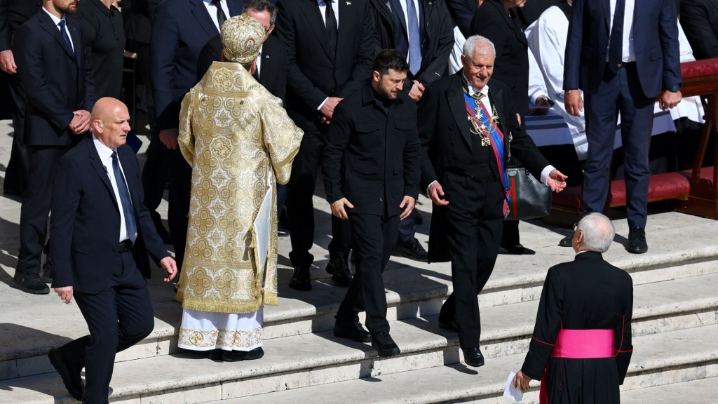 【16:04】乌克兰总统泽连斯基步入圣伯多禄得广场。