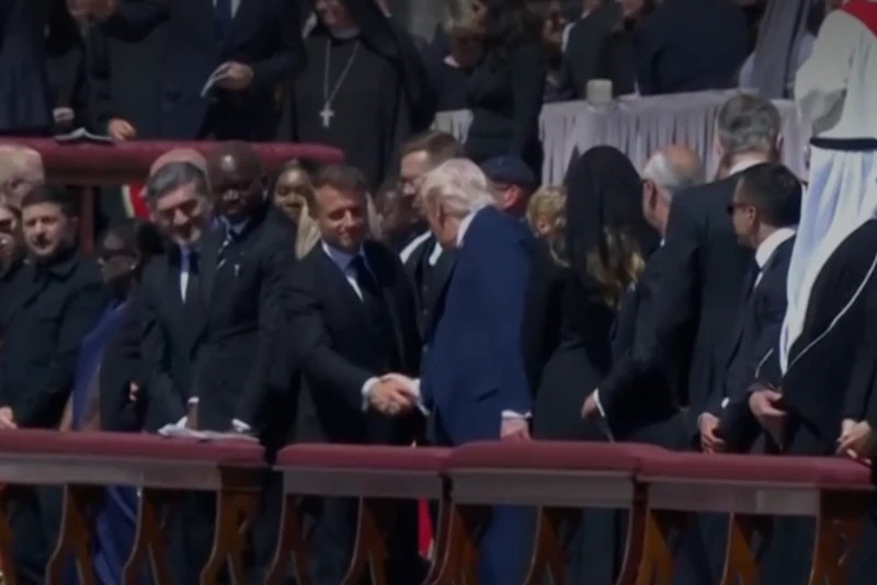 ▲泽连斯基与特朗普,还有法国总统马克龙及英国首相斯塔默在圣伯多禄大教堂碰面。 乌克兰总统府