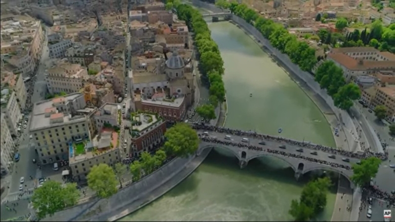 ▲车队经过台伯河。 美联社