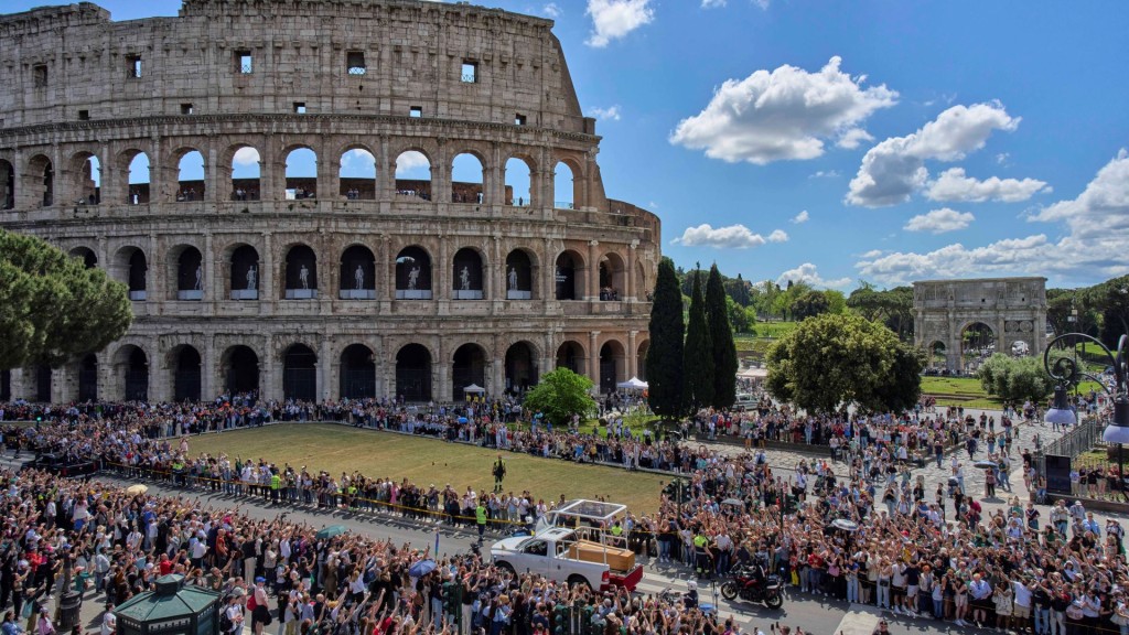 ▲灵车驶经罗马斗兽场。 美联社