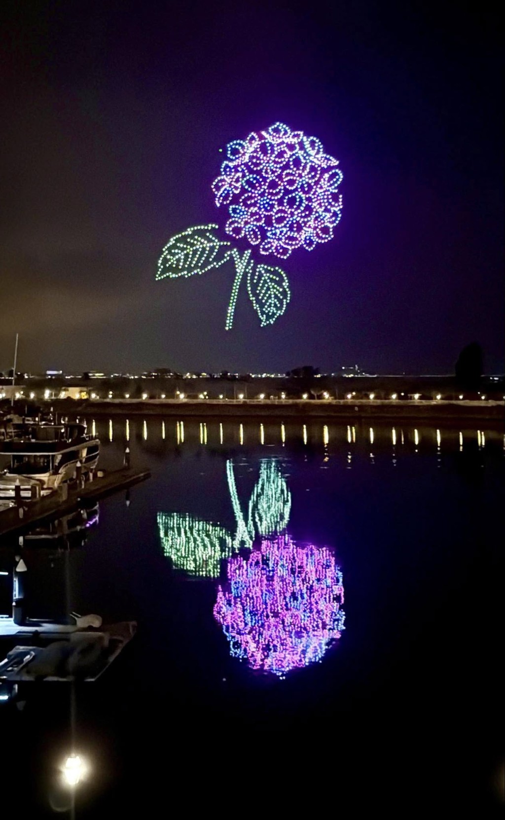 五一黄金周活动处处,除了湾仔临时海滨花园于5月1日举办无人机表演之外,其实屯门黄金海岸于同日晚上亦有无人机演出。屯门黄金海岸于黄金周期间举行“绣球花节”,带来无人机表演、市集、音乐表演等。今次表演将用上1,288只无人机,近日更被街坊捕捉到彩排实况,直击无人机于夜空中展现出海豚、花卉、蝴蝶以及活动主题字句。单是彩排已令到街坊大赞画面丰富又精彩:“屯门都有正嘢!”