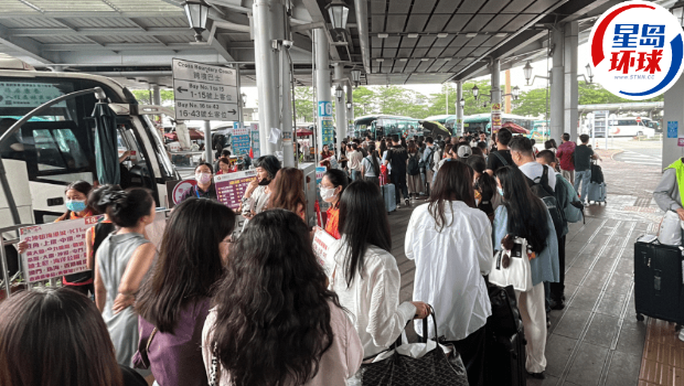 ▲深圳湾口岸有访港旅客排队等候陪上旅游巴。