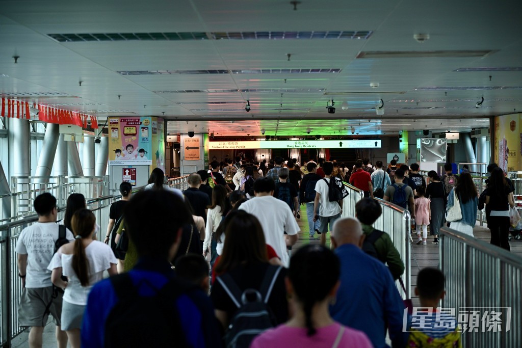 截至今早10时,有9519人次的内地旅客经罗湖入境香港。现场所见,有大批旅客在罗湖港铁站入口的等候区聚集。来自广州的曾小姐与几名友人来港露营,准备去桥咀岛,大赞香港的营地较成熟,配套设施比内地好,且过关来香港比去珠海更方便,因此平日周末也会来港露营,今次会在香港停留3晚。