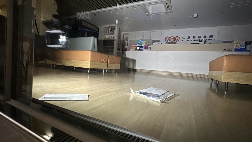 ▲位于尖沙咀的仁汇医务中心没有开门,室内遗有信件。
