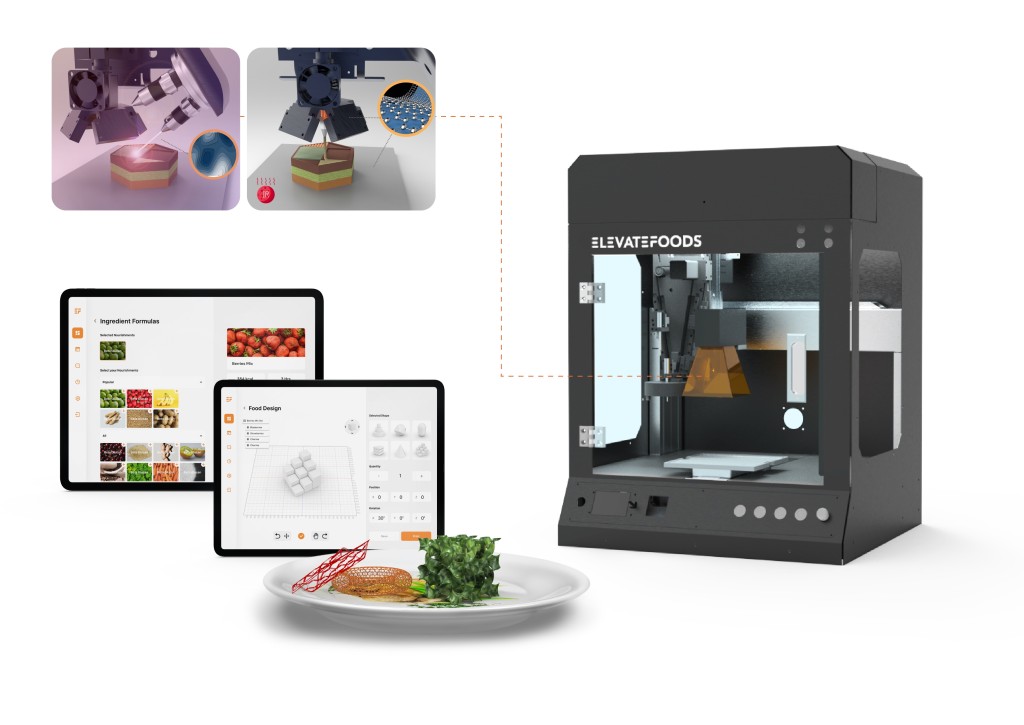 初创企业Elevatefoods于2022年成立,团队主要由科大综合系统与计设学部的学生组成,其中包括首席执行官李港慧、营运总监陈尔谦。 团队期望以其专利的3D食品打印技术,包括采用石墨烯加热器(Graphene Heater)以纳米及超快速的多层薄膜加热技术,在打印过程中逐层烤热食物蓉液,为长者、小孩甚至是宠物等有特殊饮食需要的群体,提供精准、口感佳且个性化的营养食品。