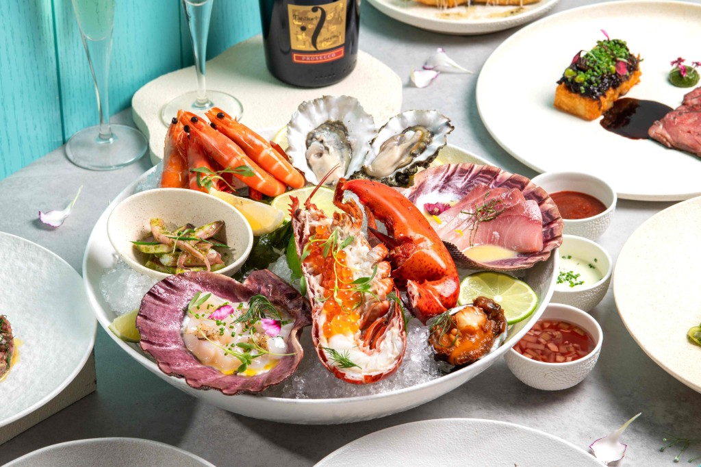 盛宴的序幕以“酸种面包”配搭海盐牛油开始,随后奉上的招牌“海鲜拼盘”则包括新鲜的生蚝、大虾、带子、油甘鱼、鱿鱼及鲍鱼等多样时令海鲜。主菜方面,宾客可选择“盲鰽”,其鲜美的海洋风情伴随日本南瓜、洋薏米、芦笋、西班牙辣椒及风干火腿泡沫,或是爱肉之人的首选——“干式熟成特选肉眼扒(12安士)”,完美搭配烤西兰花苗、油封蕃茄及薯条。