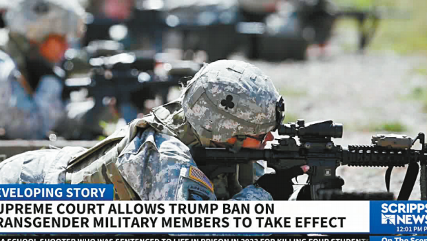 ▲最高法院6日推翻下级法院暂缓执行的裁决,允许诉讼期间特朗普政府可实施跨性别参军禁令的政策。 电视截图