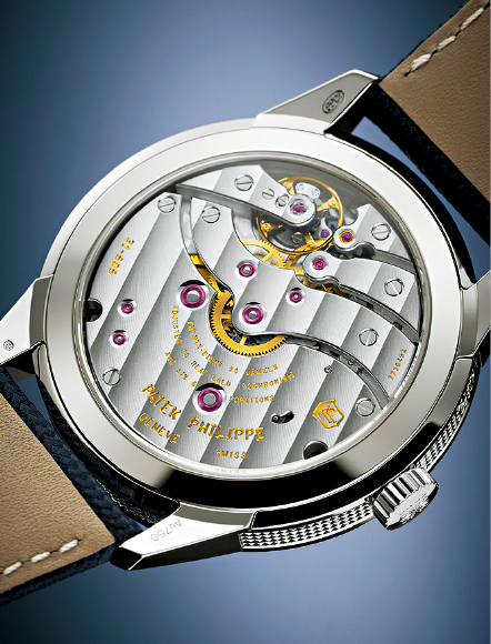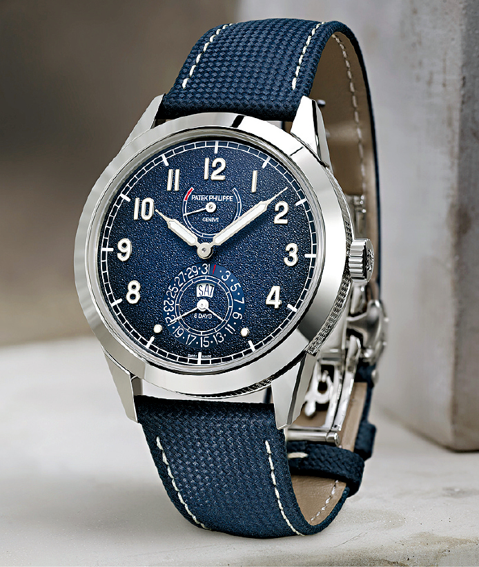 将日期显示以小盘形式呈现于表盘6点位,并与小秒针结合,虽不是甚么新鲜事,但将星期视窗再整合于日期小盘内,而两者又同时具备瞬跳功能,这就是百达翡丽在全新Ref. 5328G所实现的创新设计。由于两者显示的位置很接近,阅读起来上十分直接容易。为了平衡渐变蓝色颗粒纹理表盘的格局,品牌就在12点位设置8日动力储备显示,小指针会于上满链的第9日到达红色区,借以提示要为腕表上链。