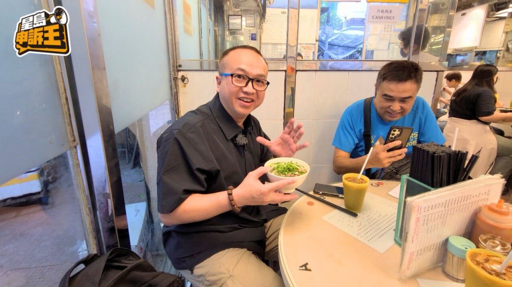 ▲《星岛申诉王》 科公子来到面店,实测边吃东西边拍片会否被阻止,身旁的吴生同样是来“挑机”。