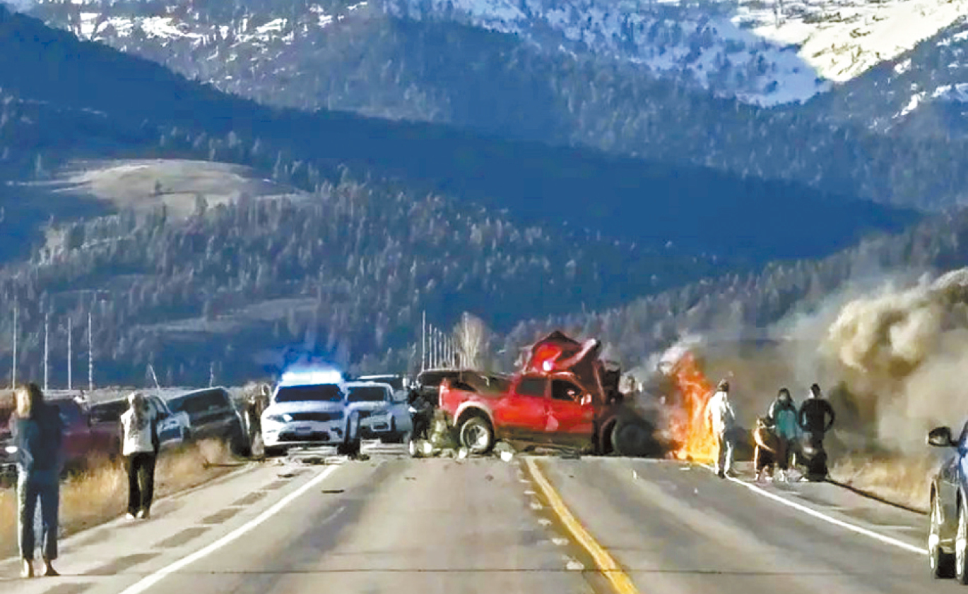 ▲1日,爱达荷州通往黄石公园的路上皮卡车和旅游车相撞,7死8伤。 美联社