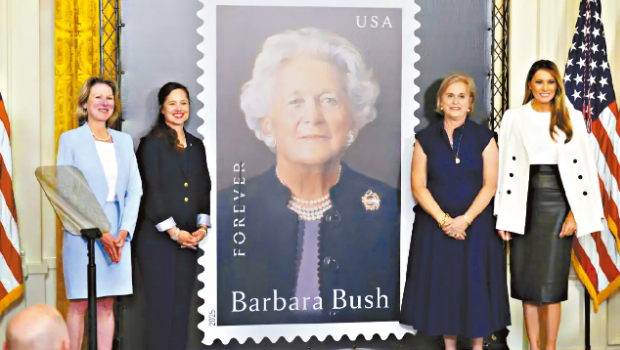美国联邦政府发行纪念邮票,并在白宫举行仪式,嘉许前总统老布什妻子芭芭拉(Barbara Bush),布什家族虽有成员出席,但身为儿子的前总统小布什却没有亮相。