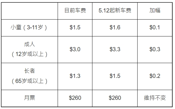 成人/小童/长者票价齐加 新收费成人单程HK$3.3