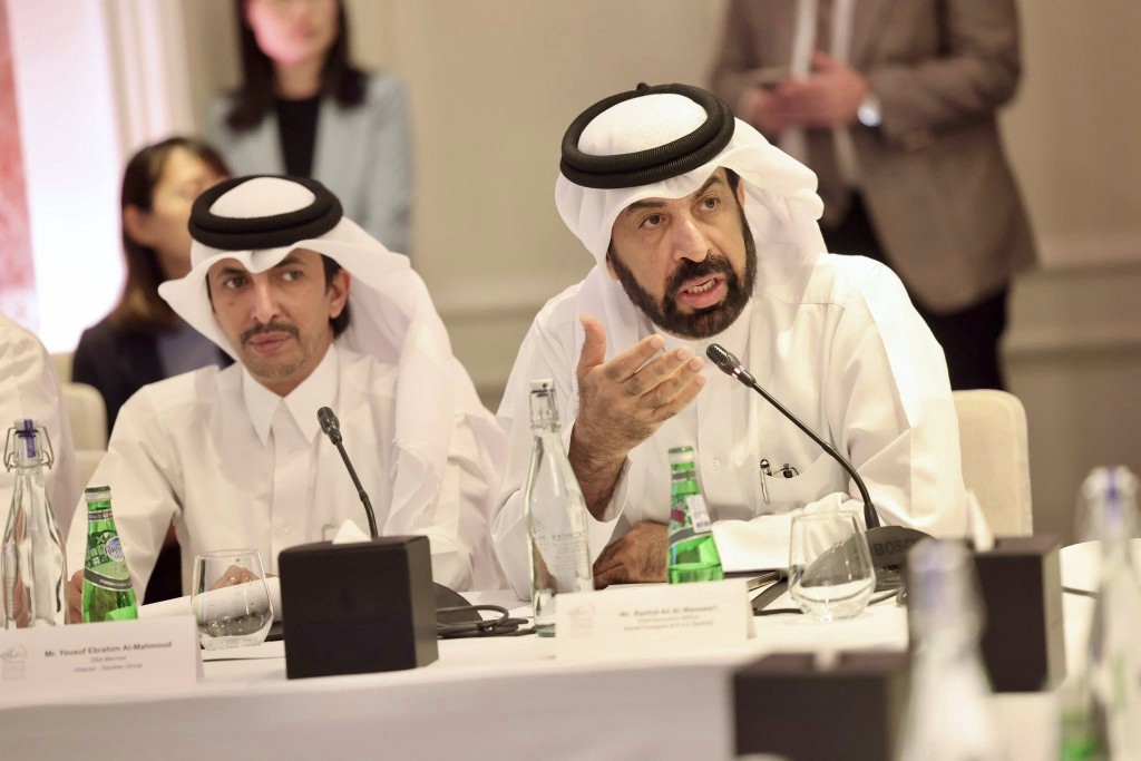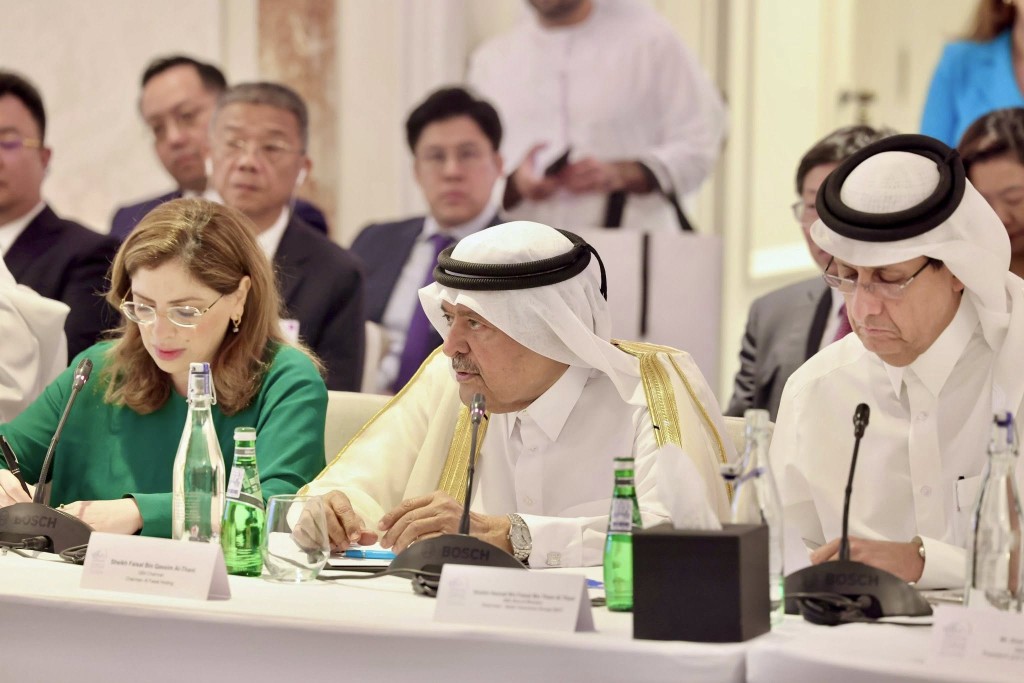 ▲代表团成员出席卡塔尔商人协会圆桌会议,与当地私营企业代表会面。