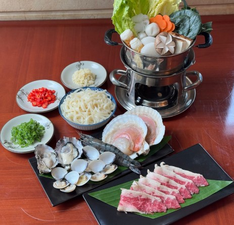 ▲包括肉类或海鲜、蔬菜、丸类及乌冬,套餐每位奉送汽水或啤酒。