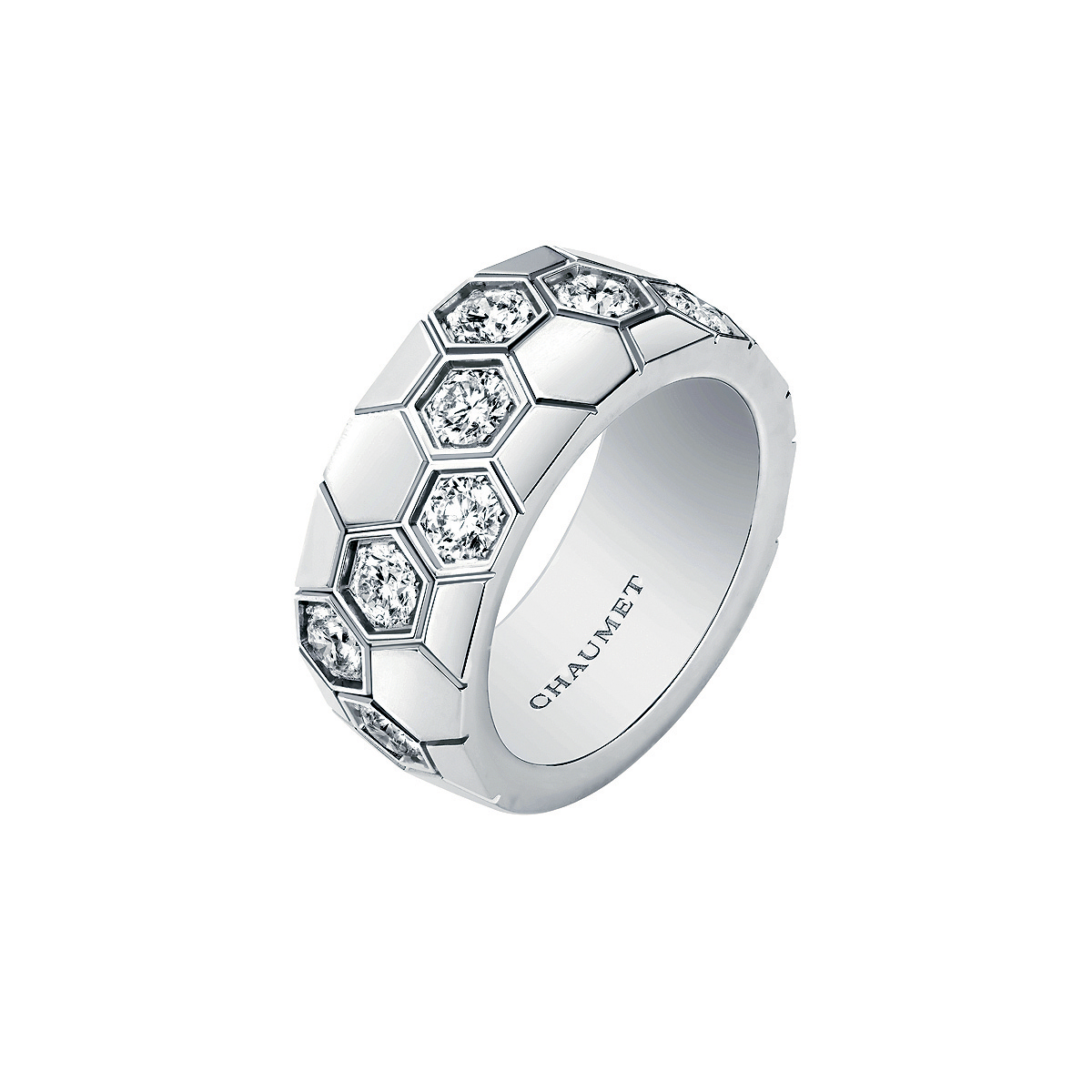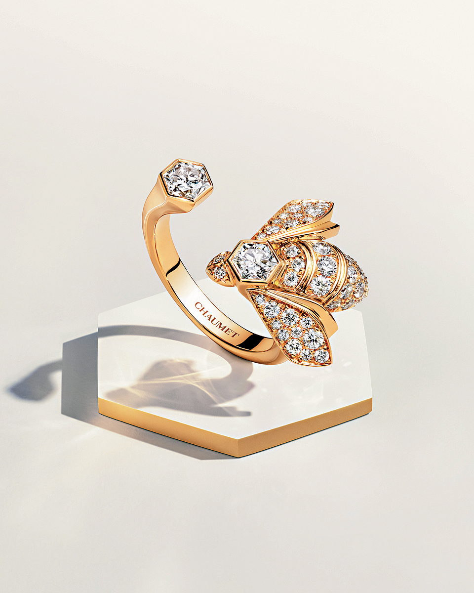 蜜蜂不仅是自然界的重要一员,也被拿破仑将之选作徽号,亦与法国珠宝品牌Chaumet的历史紧紧相扣。品牌以蜜蜂与蜂巢图案组成标志性的象征符号,成为全新Bee de Chaumet系列的主打设计元素。代表性的蜂巢六角形,透过摩登几何线条延伸出无限的可能性,同时见证蜂巢美学与品牌珠宝工艺的完美融合。
