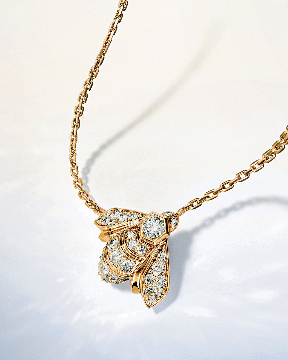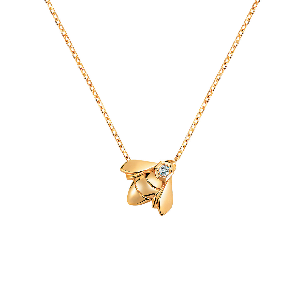 ▲蜜蜂造型吊坠项链镶嵌明亮式切割钻石,令翅膀及身体在光线折射下更添层次。