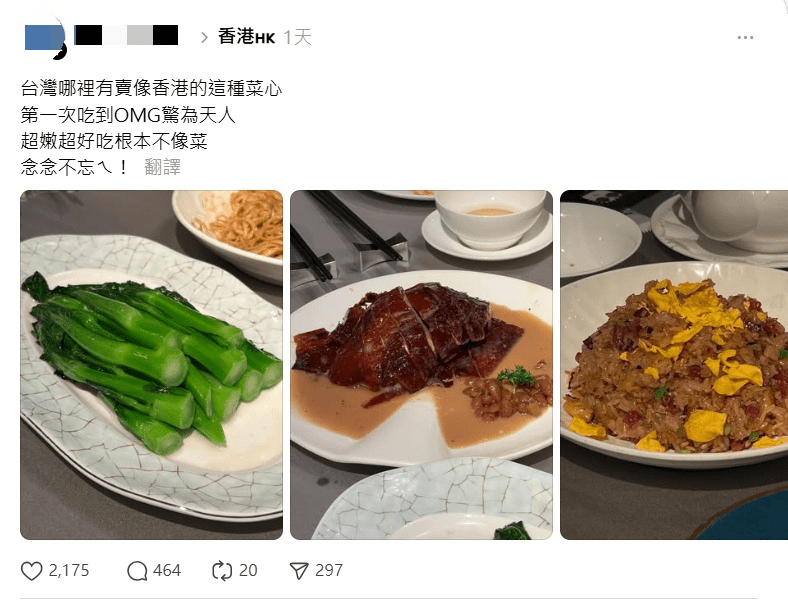 早前有台湾网民在社交平台Threads发文,分享早前来港到中环一间餐厅品尝港式烧味及小菜,席间一道简单的清炒菜心更是令她大为惊喜,形容味道“惊为天人”、“超嫩超好吃根本不像菜”,让她回到台湾后仍然念念不忘,于是向网民提问“台湾哪里有卖似香港的这种菜心”?