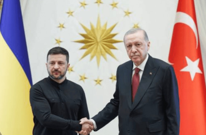 ▲泽连斯基表示,与俄罗斯的伊斯坦堡会谈最快周四晚或周五举行。图为泽连斯基与土耳其总统埃尔多安见面。法新社