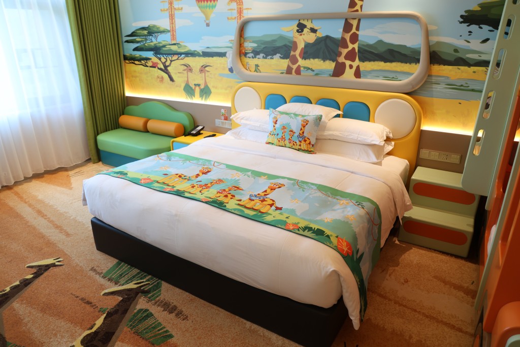 位于清远长隆度假区内的长隆长颈鹿城堡酒店,是园区内第一间亲子酒店,以长颈鹿作主题。酒店范围有被长颈鹿、斑马、剑羚、大羚羊、冠鹤包围的小园区,因此,酒店内能近距离观赏动物,还能参与投喂互动。虽然度假区比较偏远,不过,在用餐上都有不少选择,除自助餐外,还可有美食街,而从酒店步行到园区只需约5至10分钟。