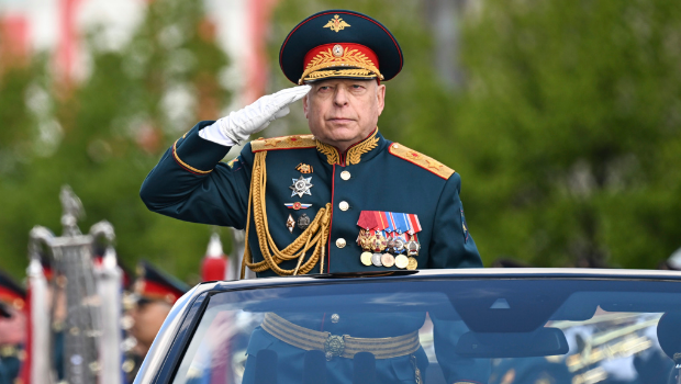 ▲2025年5月9日,俄罗斯陆军司令萨柳科夫,于胜利日阅兵中向红场致敬。(美联社)