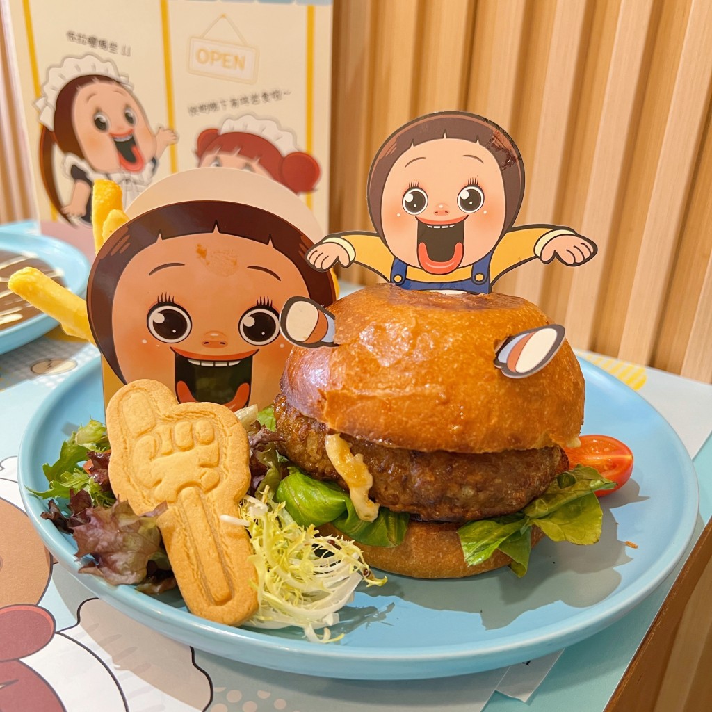 山下菓子特别于旺角打造全港首间SHO CHAN主题café“SHO-CHANの厨房秘密”,SHO-CHAN灿子及CHI-CHAN小琪更会破天荒以日本正式授权的全新独家厨师及女仆造型登场,并会带来逾50款主食、饮品及甜点,推介汉堡配薯条,有鸡扒、吉列猪及和风三款口味,可爱的灿子更“坐”在汉堡上,配上角色薯条盒,绝对要“相机先食”。