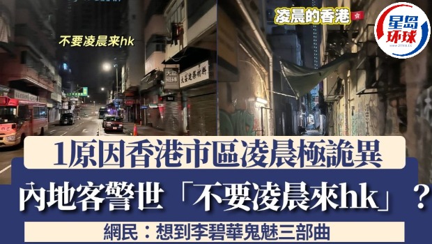 早前有内地旅客在小红书以“凌晨的香港hk真的超诡异?”为题发文,并上载数张香港市区凌晨时份的照片。从相片中可见,凌晨的香港街道空无一人,更写有“不要凌晨来hk”、“午夜香港hk惊魂”的字眼,在帖文中又直指香港有很多古老建筑及街区,“常伴随着各种都市传说和鬼故事”,会令人感到惊悚。