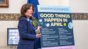 于19日早上在记者的陪同下,胡楚摆出各种姿势拍照,并向A车乘客分发宣布贴纸。随后,她与其他政客和MTA主席利伯(Janno Lieber)一起在记者会上发表讲话,然后乘坐州警汽车离开,没有回答任何问题。