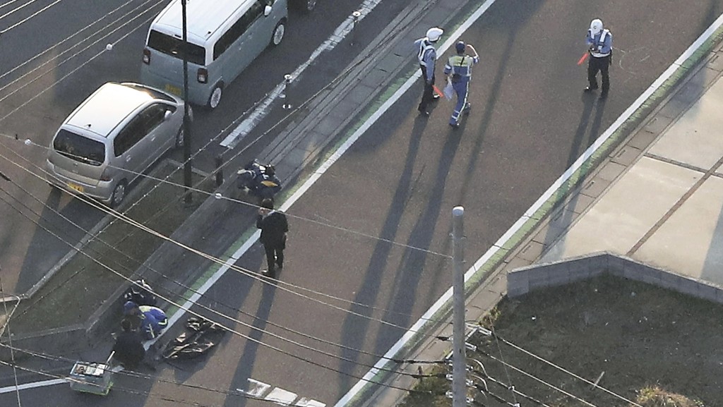 ▲邓洪鹏驾车撞伤小学生意外现场。法新社