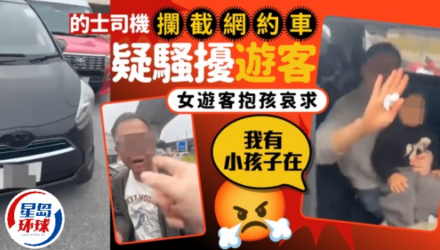 网上今日(21日)疯传影片,有的士司机在机场拦截网约车,并用手机近距离拍摄车上游客,该的士司机以普通话,大声质问他们“你身体有没有事”,有女游客抱孩童被近拍,哀求司机停止滋扰:“我有小孩子在......”