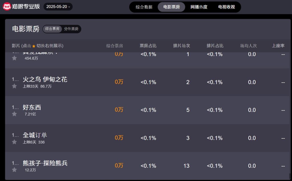 ▲截至5月20日《全城订单》亦只有336人民币,累计观众人次只有12人。
