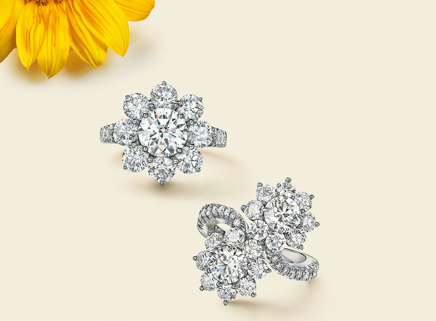 ▲Sunflower系列全白钻戒指,两款不同的设计,均绽放灵动的光彩。
