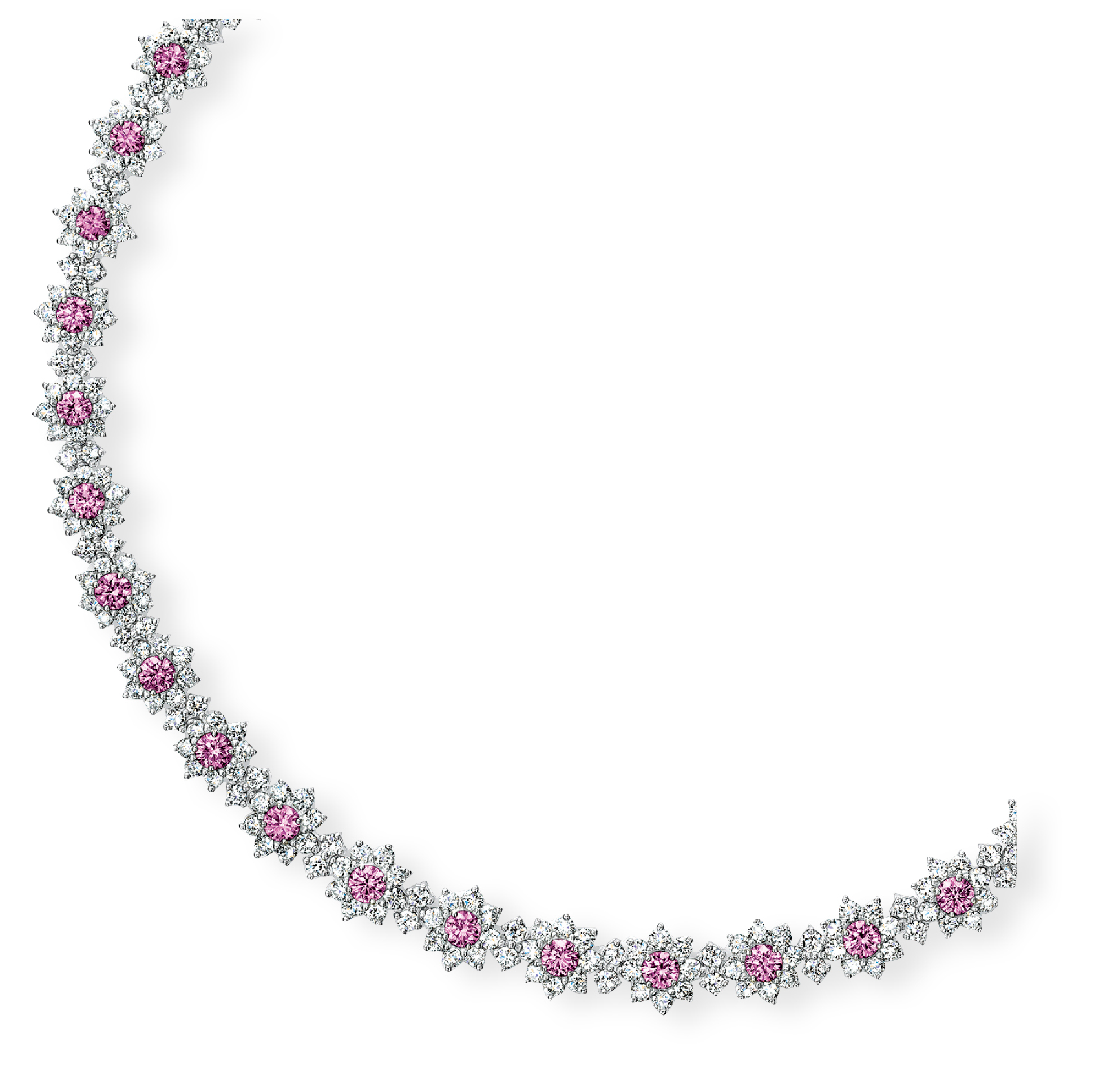 ▲由多颗向日葵组成的粉红蓝宝石钻石项链,是系列新作之一。