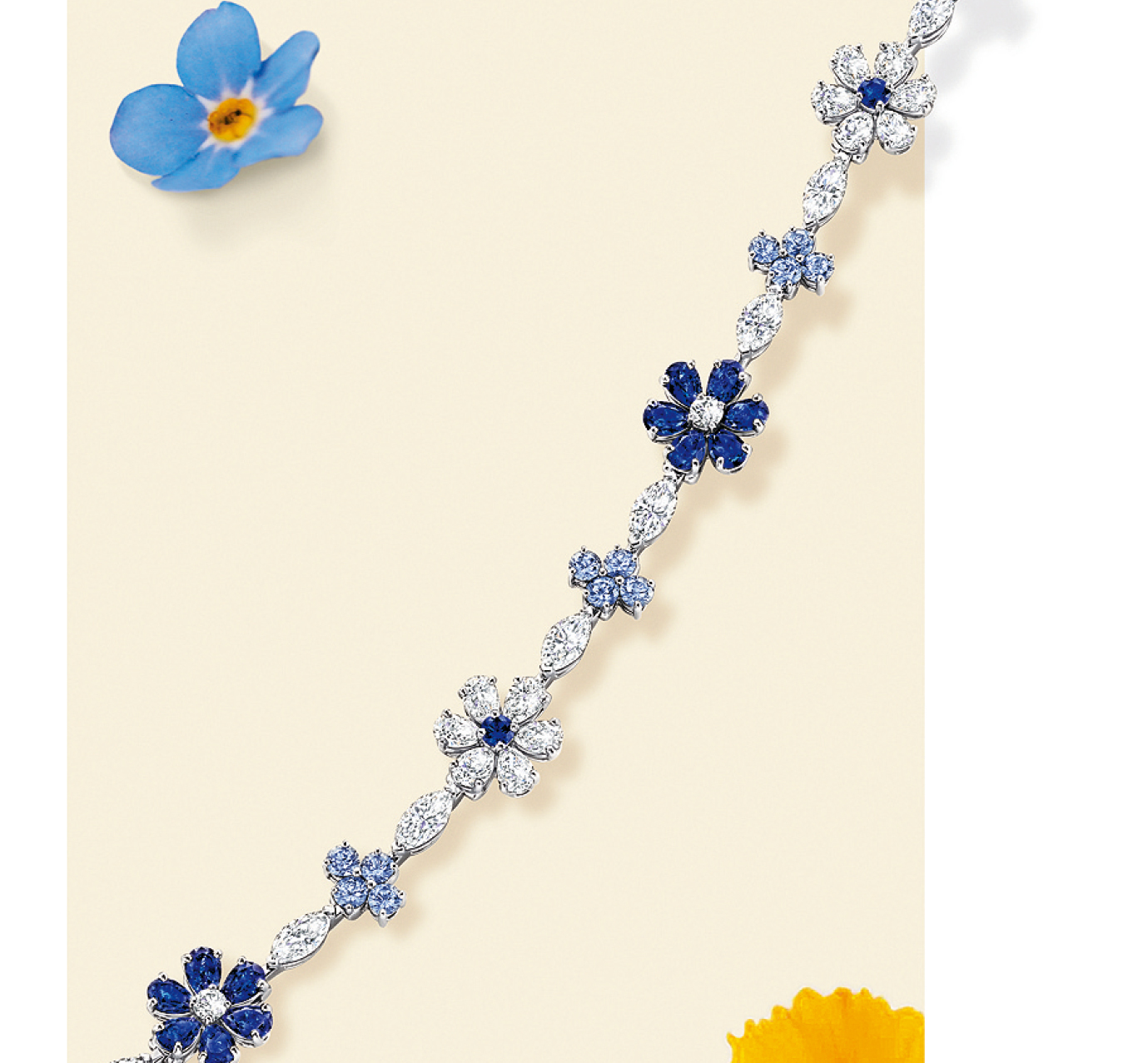 这个珠宝系列是传奇设计大师Maurice Galli最后的杰作之一,为品牌的浪漫珠宝花园增添一抹璀璨色彩。擅长从大自然汲取灵感的HARRY WINSTON,将寓意深远的花卉融入珠宝创作之中,更以勿忘我(Forget-Me-Not)的花名为系列命名,正如其花语所述,代表着永恒的爱、不变的初心及深刻的回忆,每件珠宝都盛载着这份动人情感。