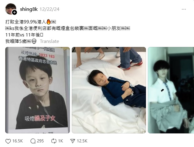 香港在1983年在香烟包装上引入文字健康警示,并于2007年起采用烟害图象警示,而在12款烟害图象警示中,烟害广告男童可谓深入民心。最近,这位烟害广告男童事隔12年在社交平台现身:“冇错我就系烟盒包装嗰条友”,获一众网民踊跃欢迎,“喂细路,我识咗你好多年喇!”,详情即看下文!